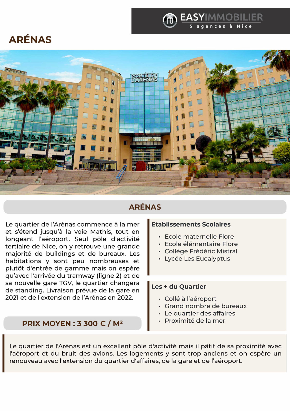 Le quartier de l’Arénas commence à la mer et s’étend jusqu’à la voie Mathis, tout en longeant l’aéroport.