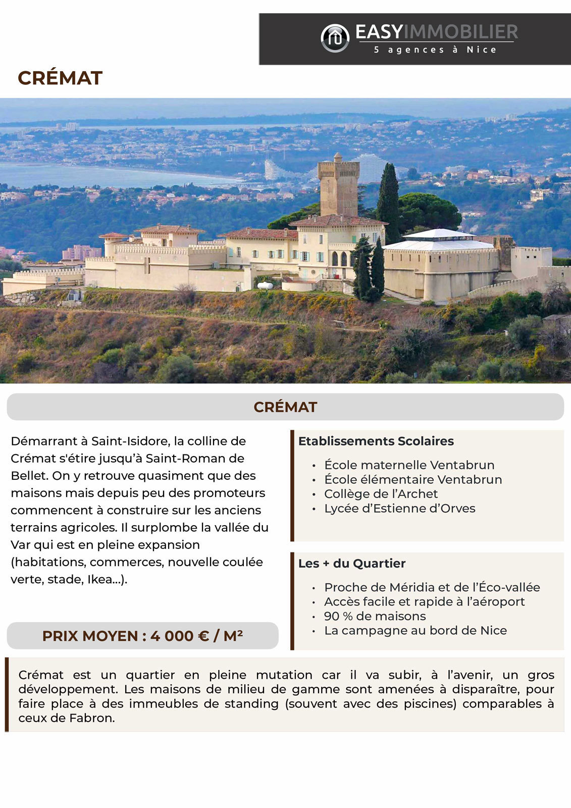 Crémat est un quartier en pleine mutation car il va subir, à l’avenir, un gros développement.